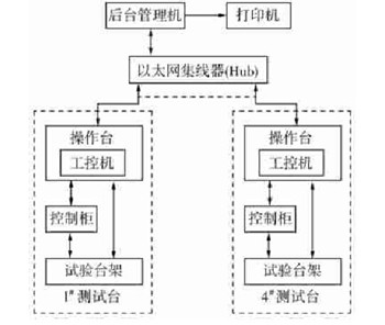 后臺(tái)管理機(jī)用于管理多個(gè)操作臺(tái)中的測(cè)試試驗(yàn)據(jù)。通過后臺(tái)管理機(jī),可備份操作臺(tái)工控機(jī)中的試驗(yàn)數(shù)據(jù),對(duì)測(cè)試數(shù)據(jù)可進(jìn)行各種查詢,匯總、打印各種報(bào)表等,避免了逐個(gè)查詢每一測(cè)試臺(tái)工控機(jī)中數(shù)據(jù)的繁瑣操作,也有利于保證測(cè)試數(shù)據(jù)的安全性。操作臺(tái)主要完成各參數(shù)的測(cè)量、各種試驗(yàn)狀態(tài)的讀取和判斷,控制測(cè)試系統(tǒng)完成各種試驗(yàn)項(xiàng)目。控制柜中安裝了執(zhí)行機(jī)構(gòu),主要功能是執(zhí)行操作臺(tái)工控機(jī)發(fā)出的指令,完成對(duì)試驗(yàn)對(duì)象的控制。