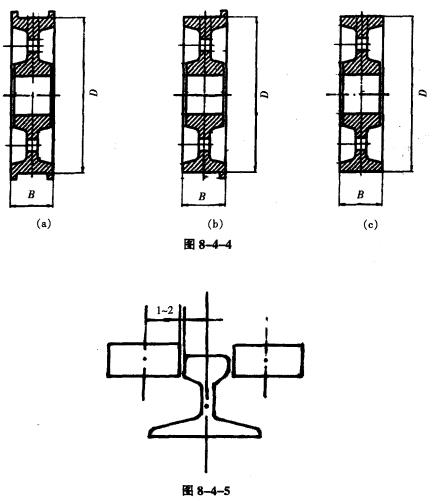 ②按結(jié)構(gòu)形式分,如圖8-4-4所示,有雙輪緣、單輪緣和無輪緣車輪,車輪踏面為圓柱形踏面,葫蘆式起重機(jī)運(yùn)行車輪多采用雙輪緣圓柱形踏面車輪。