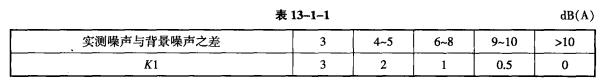 測量時,用聲級計在各測點上先按A檔讀數(shù)測定背景噪聲,然后逐點測起升機構(gòu)噪聲。測試時,脈沖聲峰值除外,當(dāng)測得值與背景噪聲之差在3~10dB(A)范圍時,測試值應(yīng)予修正。修正值K1見表13-1-1。起升機構(gòu)實際噪聲值為實測噪聲值減去修正值K1。