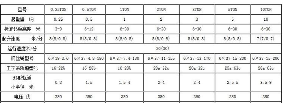 每種規(guī)格鋼絲繩電動(dòng)葫蘆所對(duì)應(yīng)的工字鋼軌道范圍如下圖: