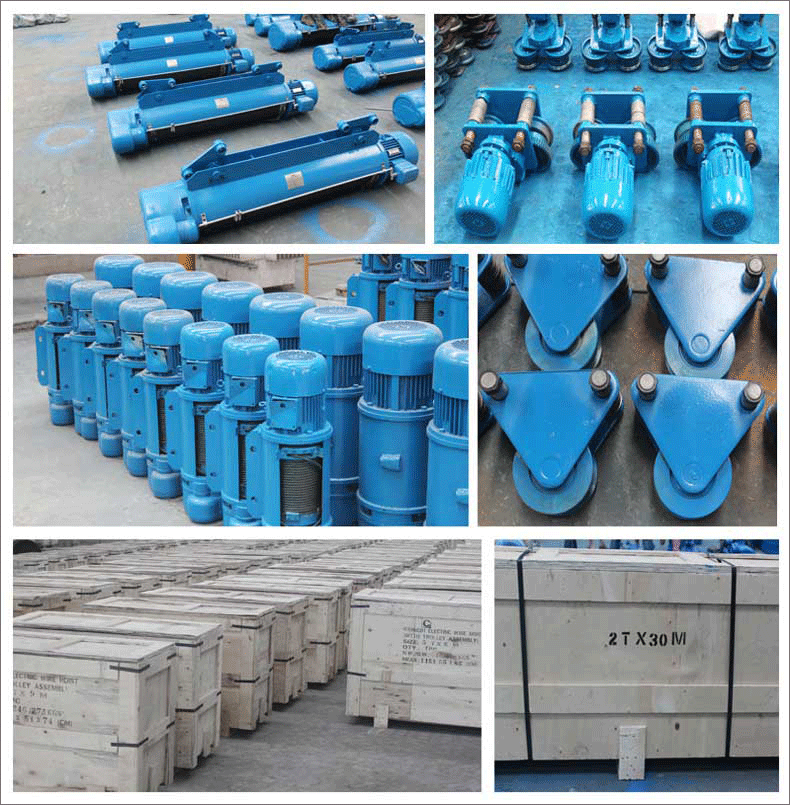 (4)起升主機(jī)部分外罩為方型焊接結(jié)構(gòu),四面均有安裝螺栓孔,通用性高,可快速改換成固定式或懸掛小車運(yùn)行式電動(dòng)葫蘆,并可360°方向出繩。
